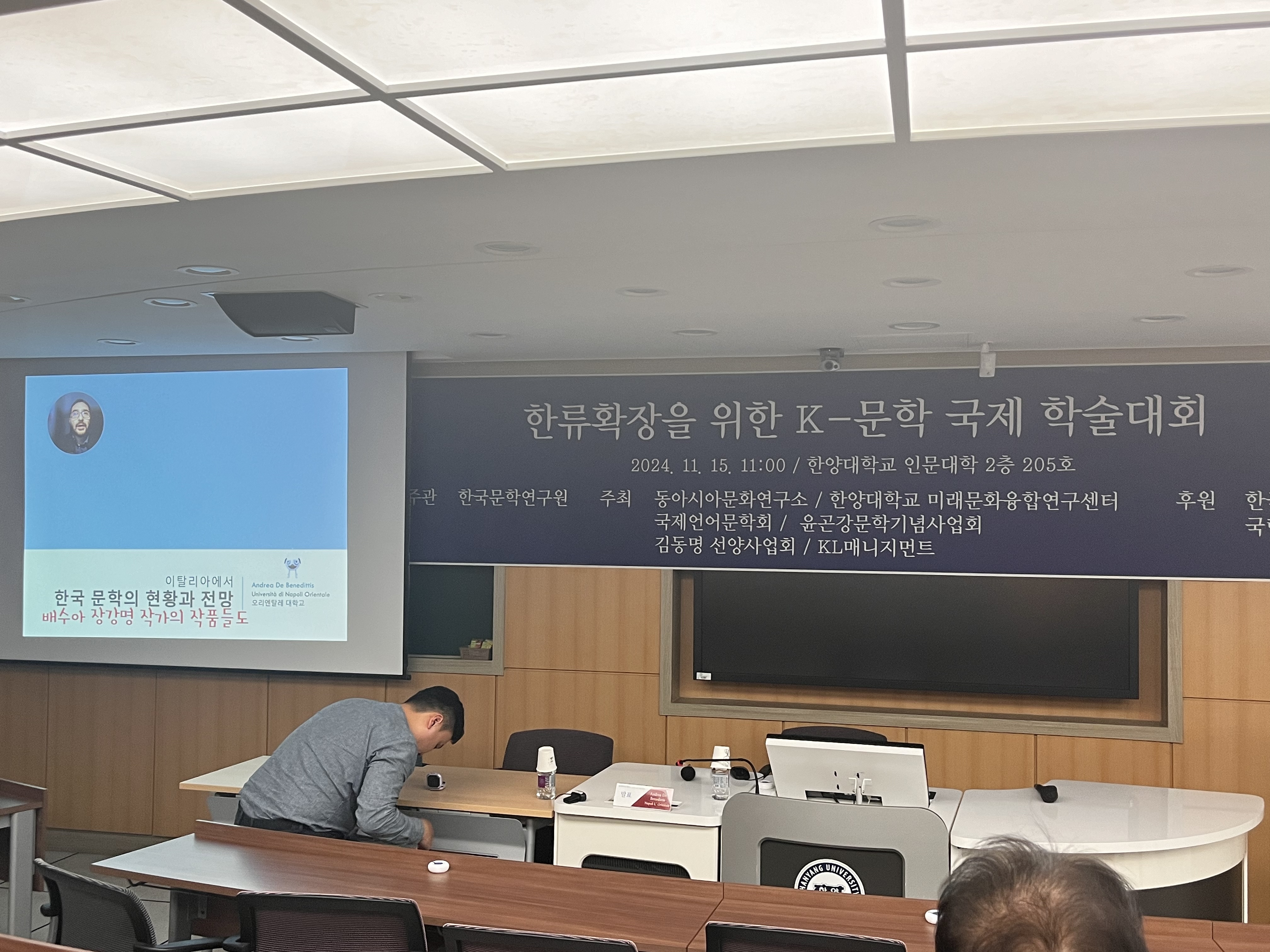 한국문학연구원(원장 박주택)이 주최, 동아시아문화연구소 외 공동 주관한 <한류확장을 위한 K-문학 국제 학술대회>가 11월 15일(금) 11시부터 한양대학교 인문대학 2층 205호에서 개최되었다.